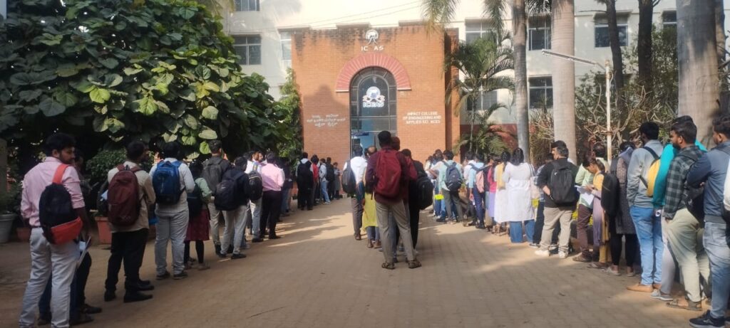 Foxconn (Hon Hai Technology Group) successfully conducted a direct recruitment drive today at Impact College of Engineering & Applied Sciences. Experienced B.E/B.Tech professionals from the EMS industry participated in on-spot interviews for various DQE and HWTE roles.