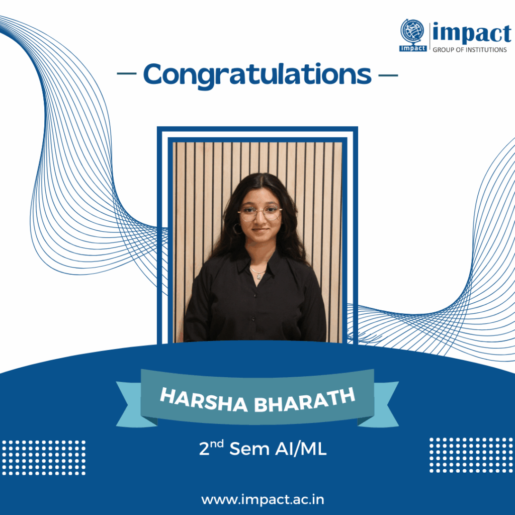 Proud to announce that Harsha Bharath from Impact College of Engineering and applied sciences achieved a perfect score in the Chemisrty Exam held in July 2025.A testament to her hard work and dedication. Congratulations, Harsha Bharath! 🌟